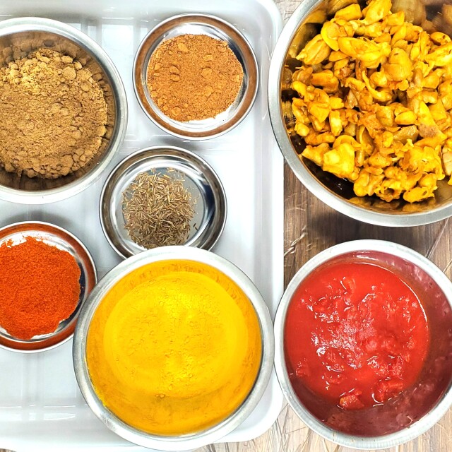 ●原材料名:米(インド産)、鶏肉、玉ねぎ、おろししょうが、こめ油、ココナッツミルク、黒糖、食塩、おろしにんにく、トマトピューレーづけ、米発酵調味料、コリアンダー、塩麹、こんにゃく粉加工(粉あめ、こんにゃく粉)、ターメリック、レモン果汁、パプリカ、スターアニス、クローブ、クミン、ブラックペッパー、カルダモン、シナモン、ナツメグ、オールスパイス、こんぶ粉、ローリエ、赤唐辛子